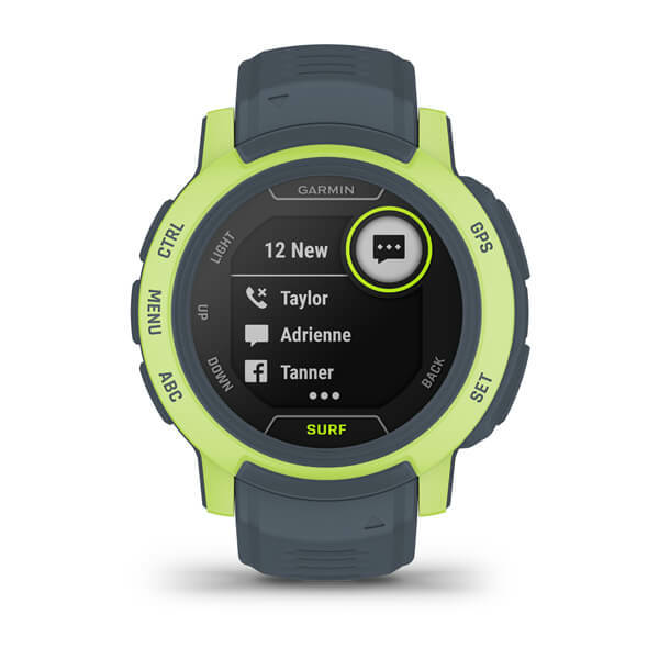 Установив сопряжение с приложением Garmin Connect на совместимом смартфоне, вы можете просматривать информацию (приливы, высота волн, ветер и рейтинг для серфинга) для каждой из пяти ближайших точек, подходящих для занятия серфингом.